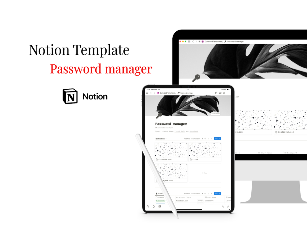 Are you looking for an efficient way to securely manage your passwords while maintaining a user-friendly interface? Our Notion template “Password Manager” offers you exactly what you need.